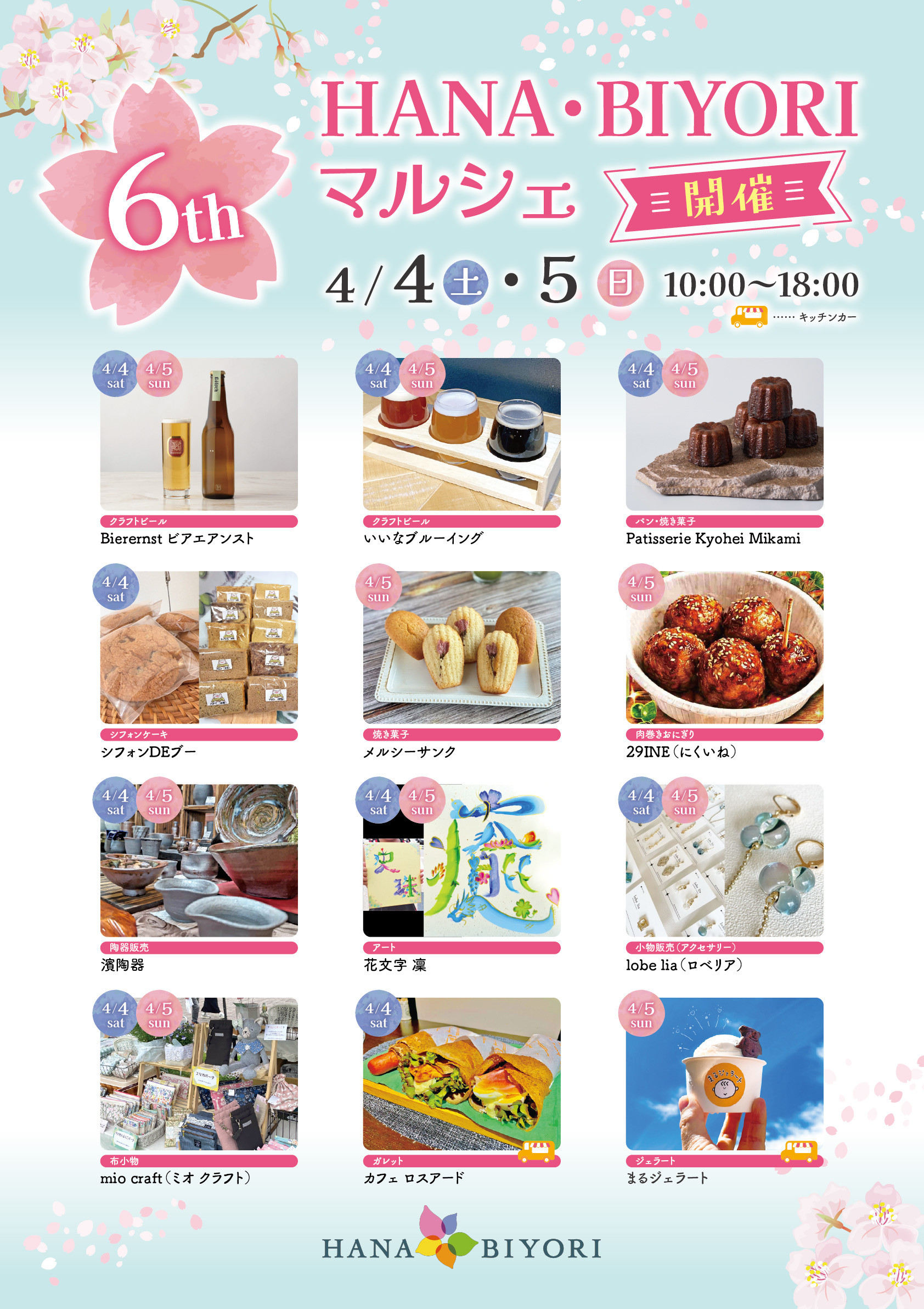 【4/5店舗は休業します。よみうりランドHANA•BIYORIのイベントに出店します】